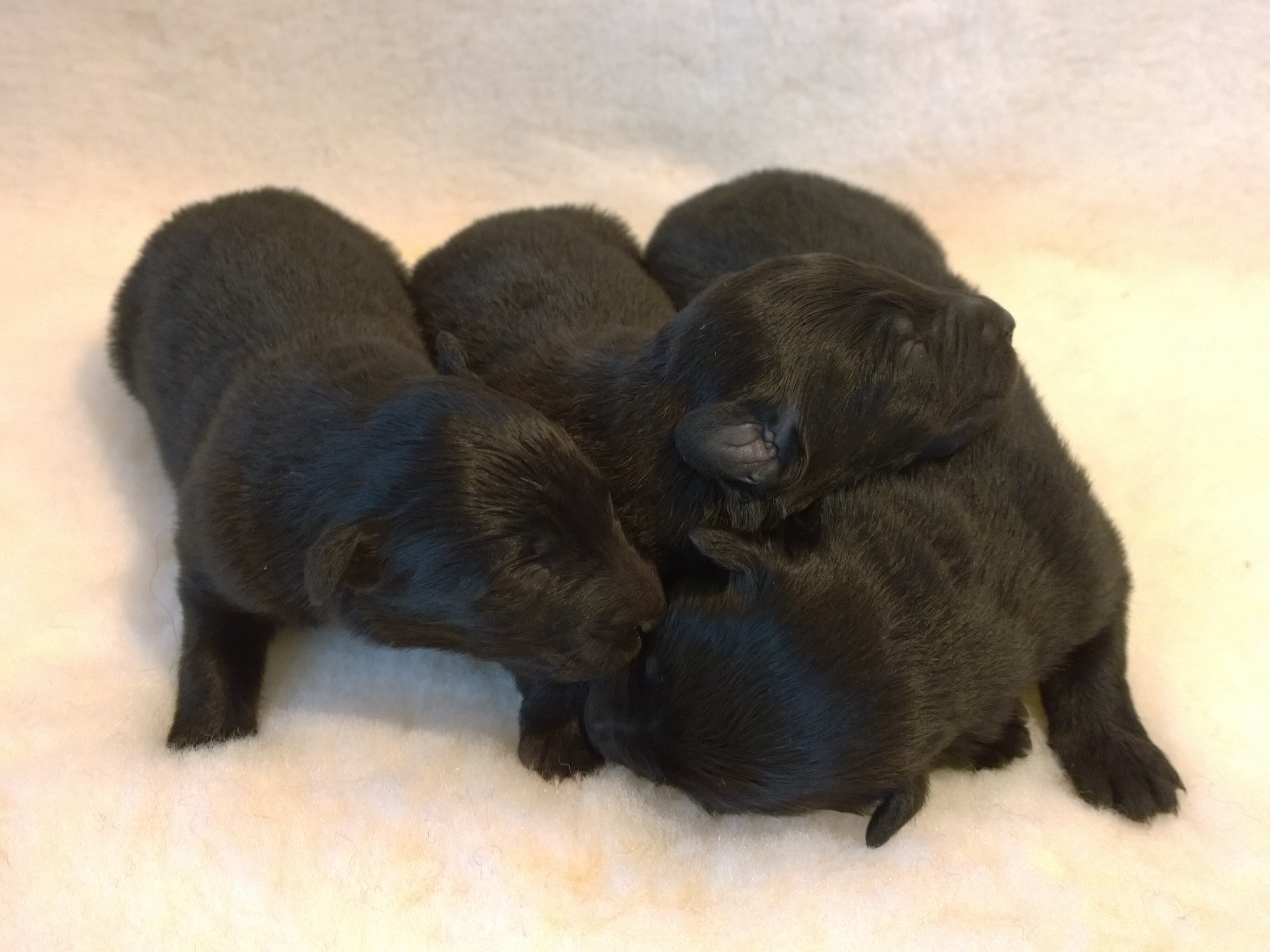Pennut täyttävät tänään yhden viikon. Kaikki voivat hyvin ja paksusti. Maitobaarissa käy kuhina. Jutta-emo nauttii äippäkoiran roolista tämän ison pentueen kanssa.